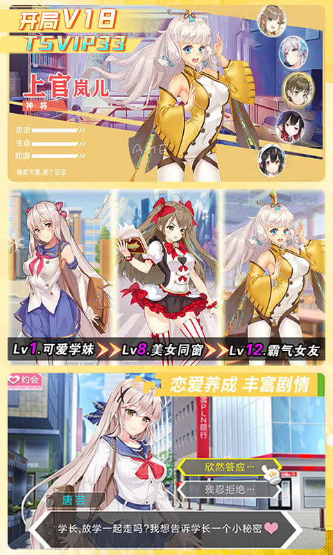 2. 通过互动聊天、赠送精心挑选的礼物、完成校花专属委托等方式提升亲密关系。当好感度达到特定节点,将触发专属约会事件——或在校园樱花树下漫步,或在天台共赏夕阳,每一段回忆都将收入心动相册。