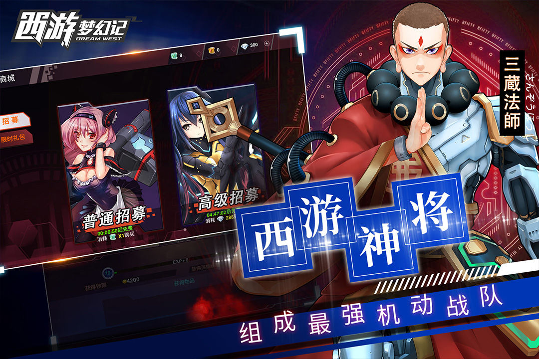 西游梦幻记是一款以西游为蓝本的3D科幻机甲手游,玩家在游戏中可以收集到众多西游人物的卡牌,并进行养成。全新的故事架构,一样的阵营,这一次用机甲的方式和各路妖魔进行战斗,感兴趣的玩家赶紧来下载体验下吧。